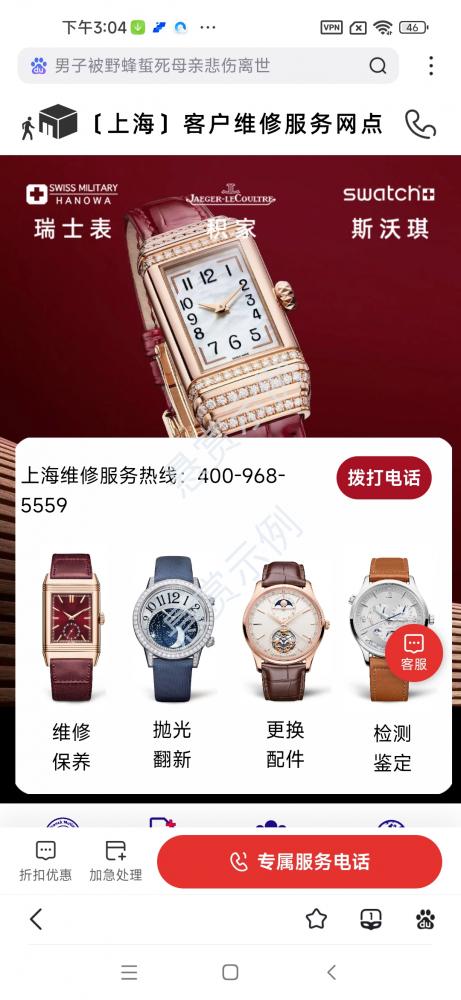 手机任意浏览器用百度搜索一定是百度:伯爵售后维修点