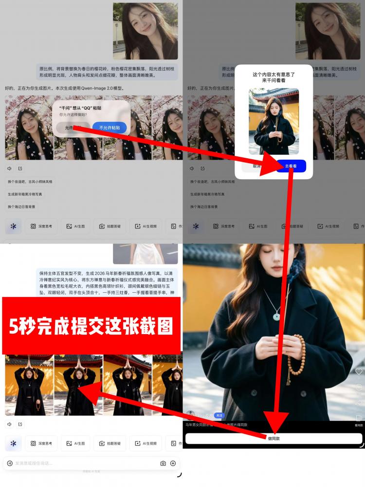 应用商店搜索“千问”➡️下载安装登录➡️复制下面口令打开“千问”弹出图片➡️去看看➡️去同款