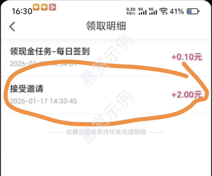 助力成功后显示接受邀请奖励两元,截图提交